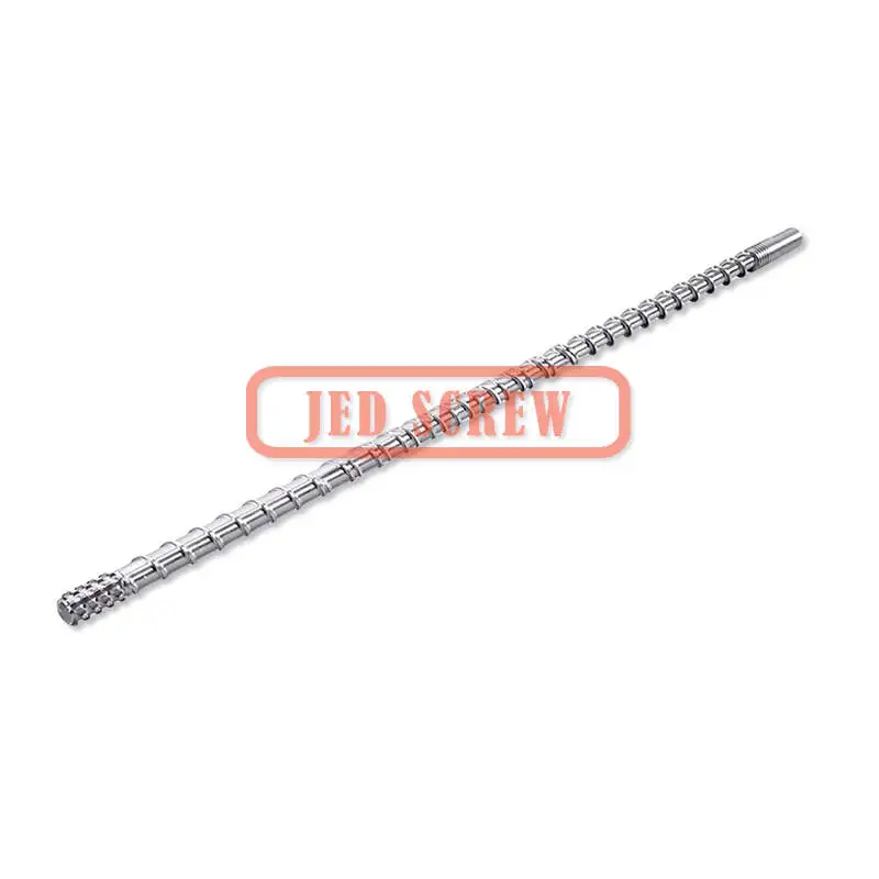 • 三段式设计‌:通常分为输送段、压缩段和计量段,各占螺杆有效长度的三分之一。输送段负责物料预热和压实,压缩段实现物料塑化(压缩比通常为3:1),计量段则稳定输送熔体至机头‌。